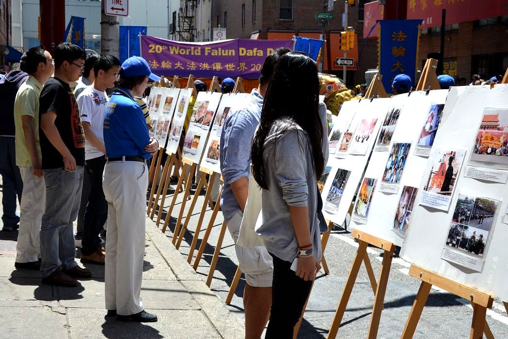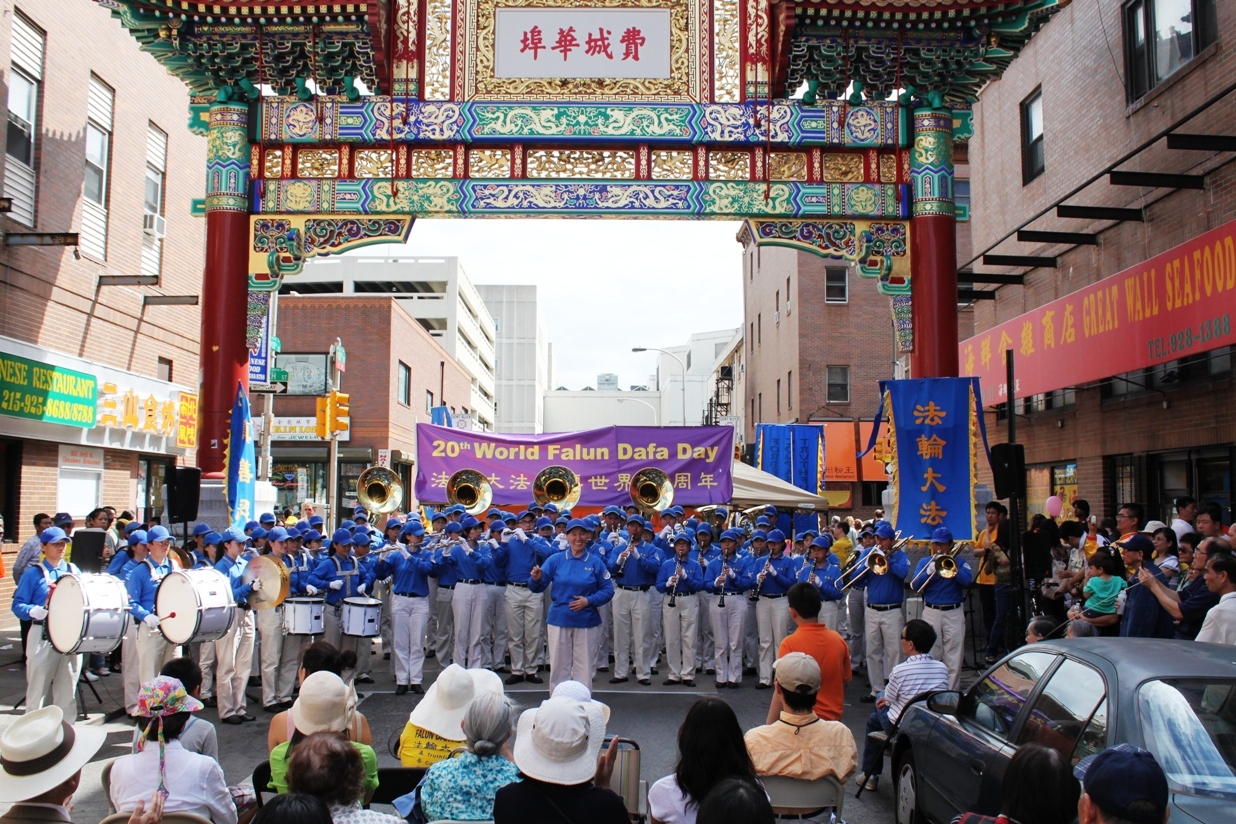 费城是美国的建国之都,美国独立的第一声钟声于一七七六年在这里响起。活动一开始,天国乐团首先吹奏了一曲《法轮大法好》的乐曲。接下来,法轮功学员们在中国城以集体炼功、分享修炼心得、真相图片展、分发真相资料、文艺演出等形式,向民众展示了法轮大法的美好,及在世界各地传播的盛况,吸引了众多民众驻足观看,了解法轮功。他们中,有的声明了三:退.(退出中共邪*党-,及其团队组织);有的现场学功。