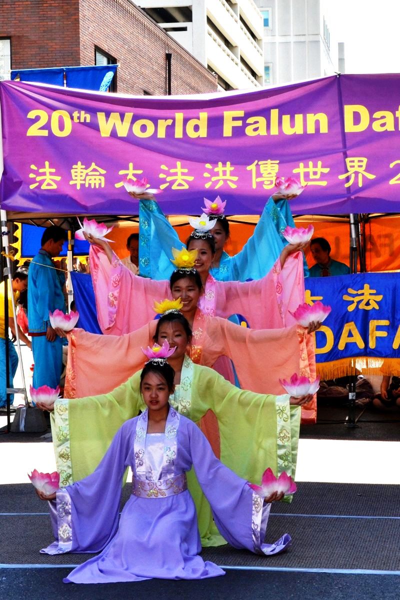 当天的庆典活动中,法轮功学员们还表演了欢快喜庆的狮子舞,法轮功小弟子们表演了小提琴、荷花舞等;历时三小时的活动,在法轮大法好的军乐声伴随下结束,人们都开心的等到最后结束才离开。这次活动的负责人吴先生感慨表示,带来的真相资料全部派完了。