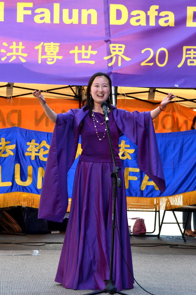 法轮功学员陶明女士在庆祝活动中与大家分享了自己修炼大法后无病一身轻,中共却以酷刑折磨,逼迫她放弃信仰的亲身经历。她说,修炼前,自己疾病缠身;修炼法轮功后这些病痛痊愈了,现在无病一身轻。但一九九九年中共开始了对法轮功学员的血腥迫害后,她因不放弃修炼法轮功,曾在大陆被非法关押四年,在劳教所受尽非人折磨,如被绑在铁椅子上三十天。她呼吁世人不要听信中共的谎言,共同努力阻止这场正在发生的迫害。
