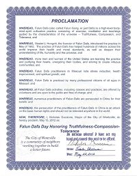 鉴于,越来越多的美国人在法轮大法的修炼中,得到了身心的净化,体质增强,并将贤德的氛围带给社区;并且