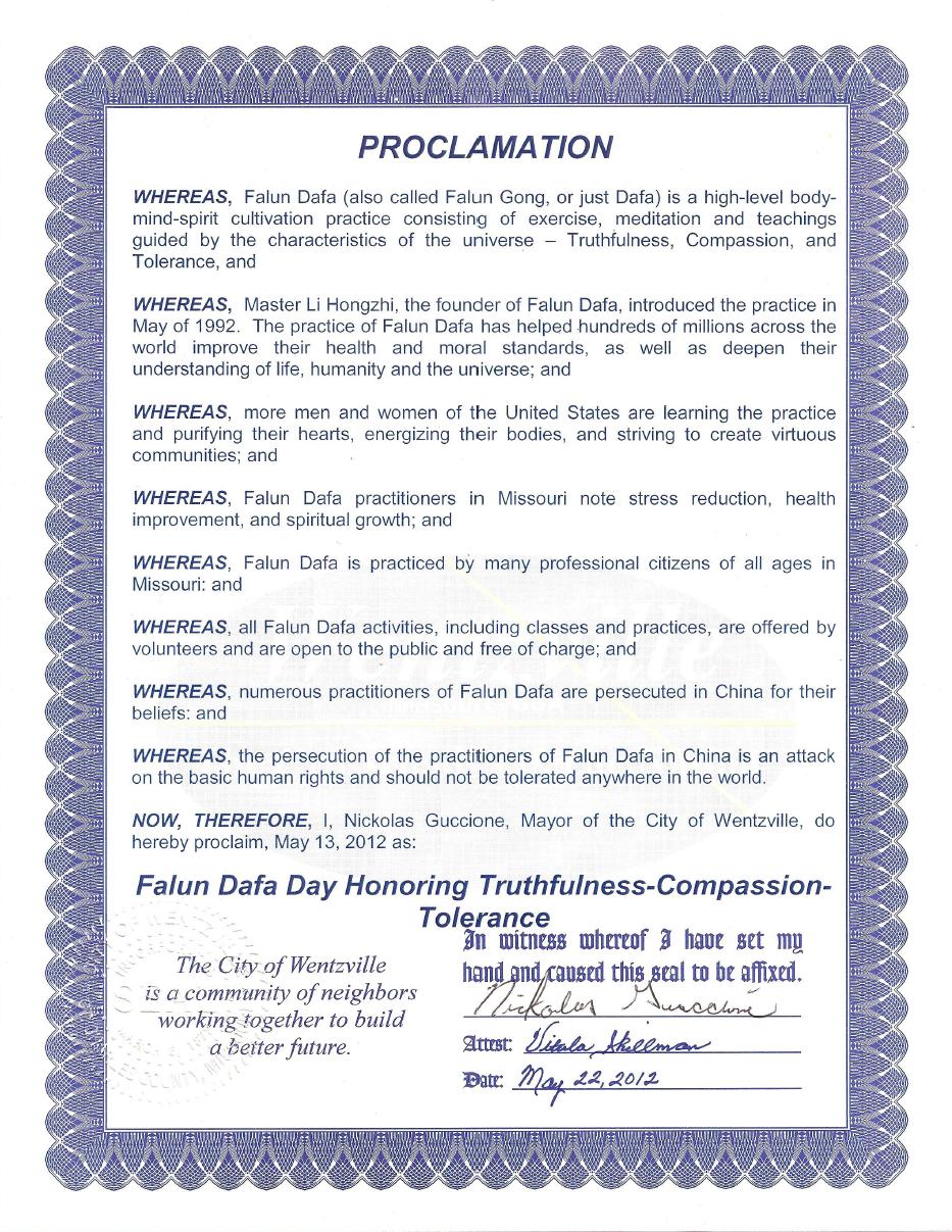 鉴此,我,尼克拉斯·古乔内,密苏里州温茨维尔市市长,特此宣告二零一二年五月十三日为