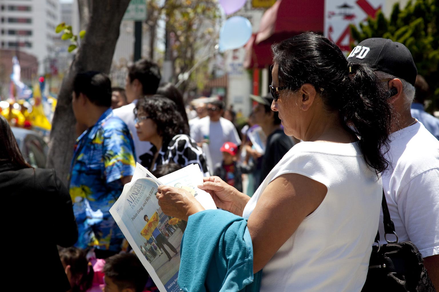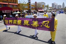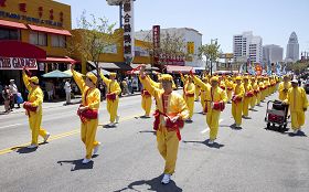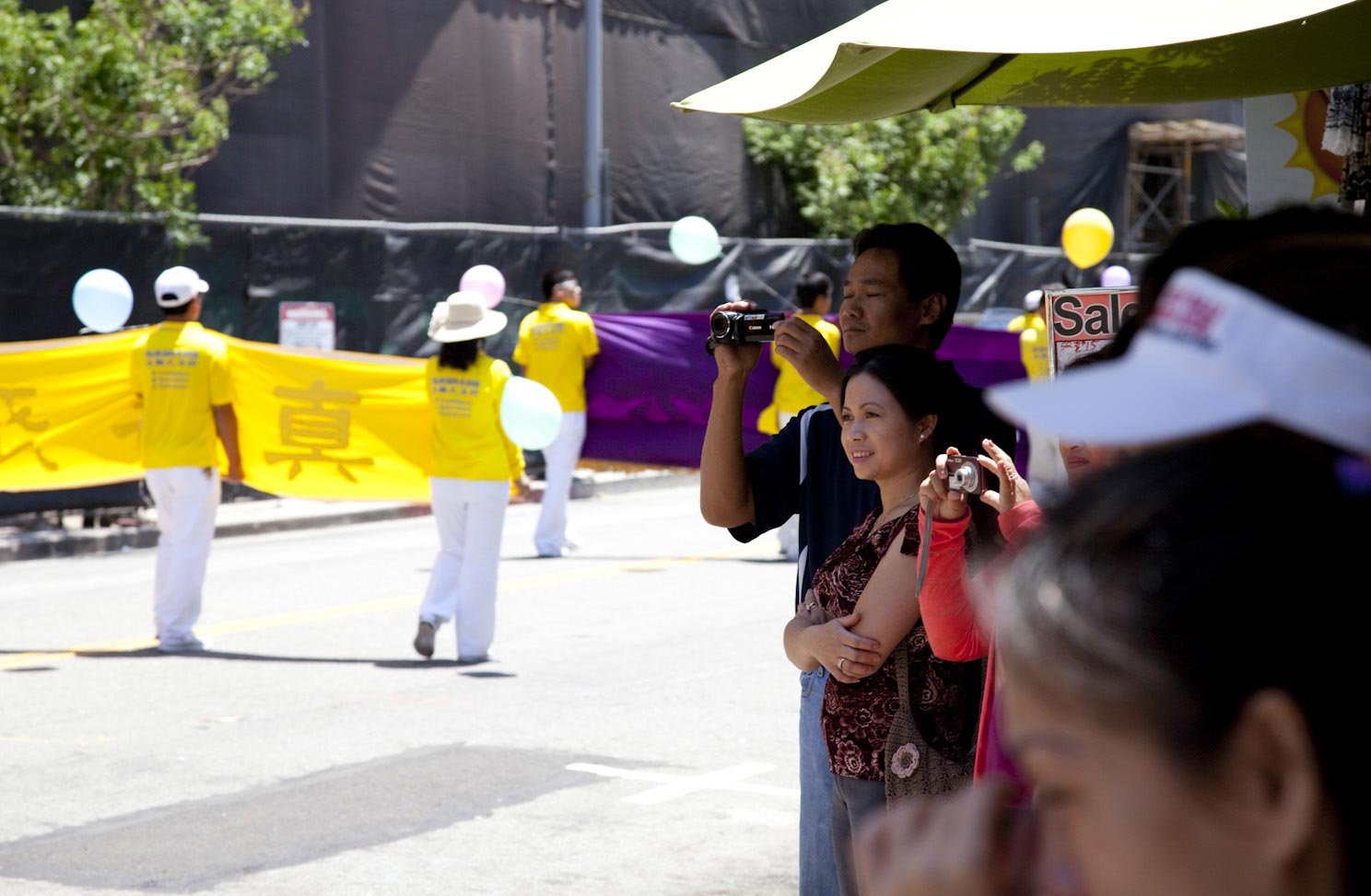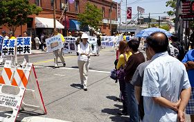 当日的集会进行了一个多小时,许多过往行人、特别是华人仍长时间伫立聆听,有的干脆坐在街边听。演讲结束后,法轮功学员的腰鼓队,仙女队和装饰了旋转法轮图形的花车更是引起了阵阵喝彩。