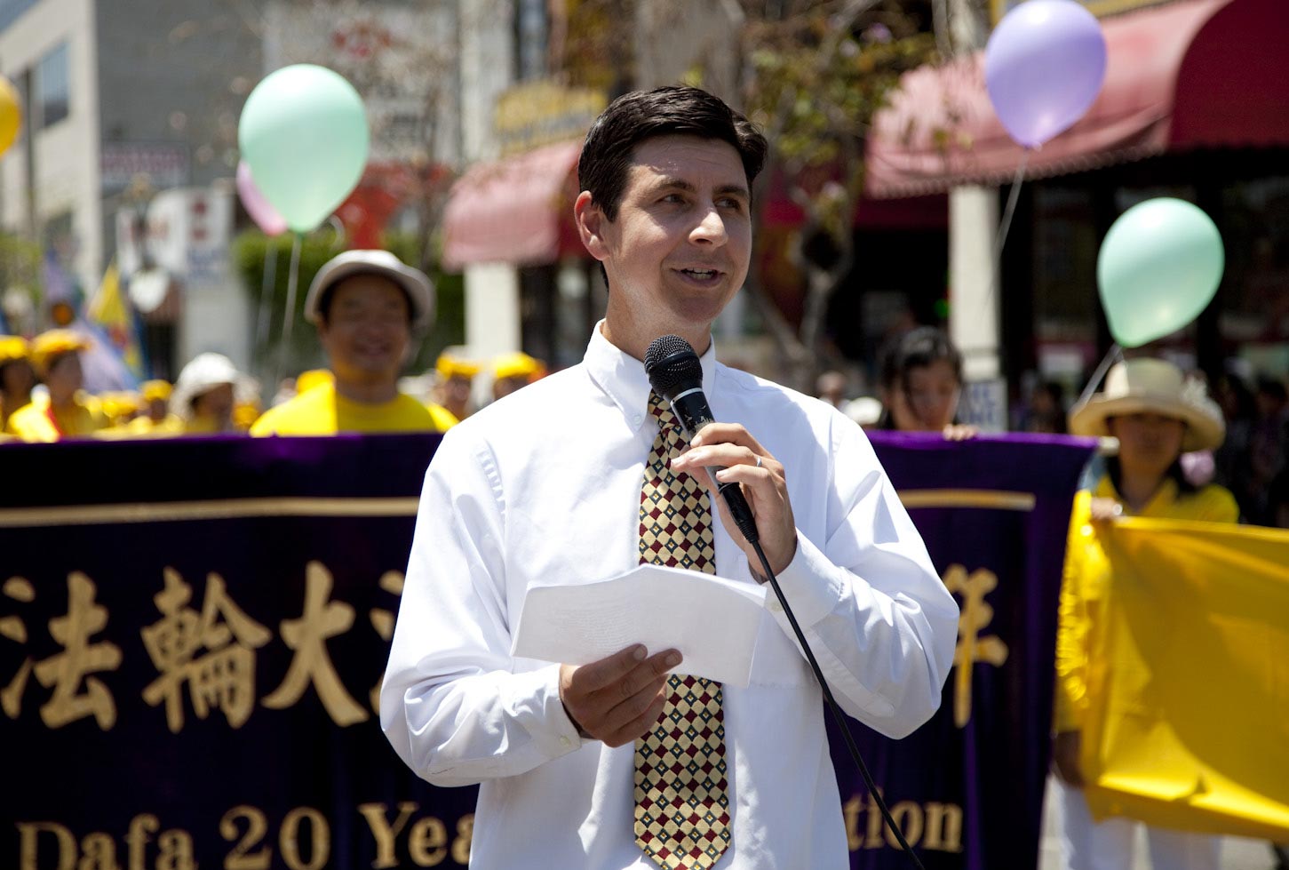 据法轮功学员代表,加州大学教授吴英年首先介绍:法轮功在一九九二年由李洪志老师在中国传出后,几年中就传遍中国以至海外。数以千万计的来自各阶层各行业的民众通过修炼法轮功得到身心健康和道德的升华。