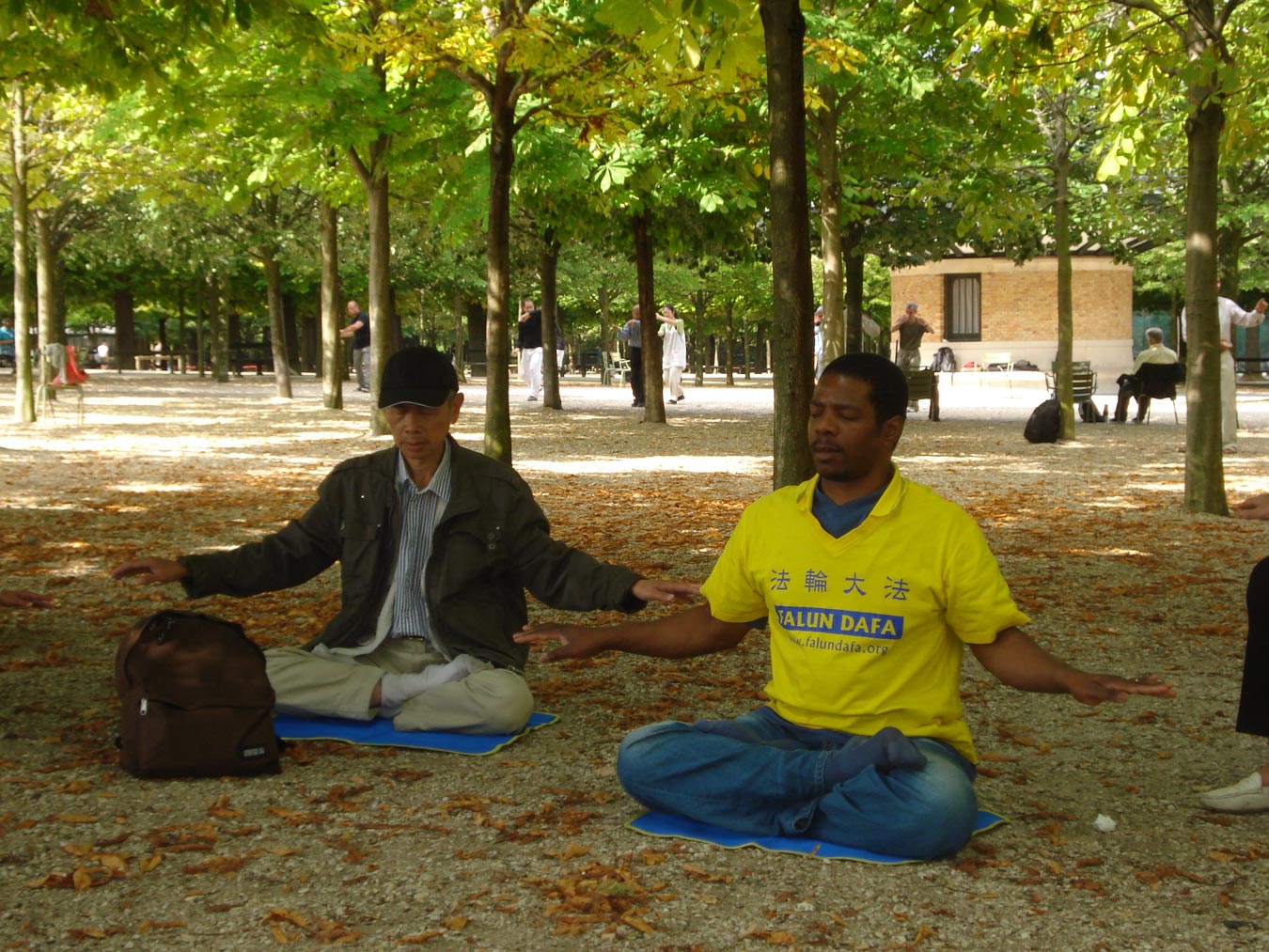 若瓦尼是一位中学教师,他个头高大,温和、纯朴。他是炼功点的联络人之一,他主动承担起了这份工作,带炼功音乐、坐垫,为大家服务。早在九十年代,他就到处去求法。他在印度生活了四个月,两次见到西藏大师。他见到过印度的瑜伽师,然而现今的印度年轻人也对修炼都不感兴趣,当时有一个声音对若瓦尼说,不要去那儿。回到法国,他几经辗转,七年练过多种气功,但他总觉得这些都不完全是他要的,应该还有别的什么,他还在继续寻找。一九九九年的一天,和往常一样,他到一家书店里寻找气功和宗教方面的书籍。他被一本书的封面吸引住了,原来是《中国法轮功》(法文版),封面是师父打坐的照片。他很喜欢书中教功的照片,便开始阅读。后来他又得到了《转法轮》一书。看完了书,他很快就找到了卢森堡公园炼功点。第一次炼功,他就感觉到小腹部位有法轮在旋转。他觉得其它气功都不能和法轮功相比,差距太大了。二零零零年二月,他参加了巴黎的一个法轮功学习班,连续九天,他每天都能感觉到内脏在调理,身体在变化。学法班上能量场很强。以前他抽烟喝酒很凶,参加了学法班后就再也没有沾过烟酒。