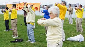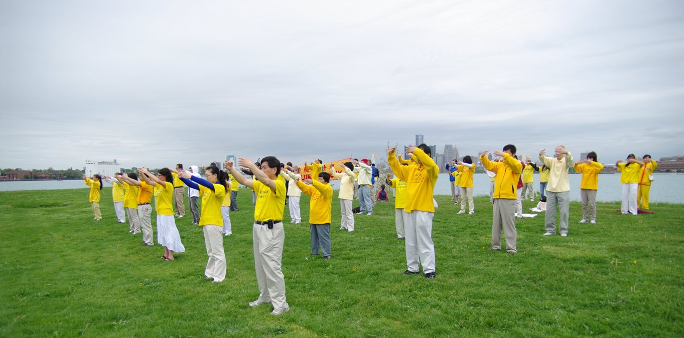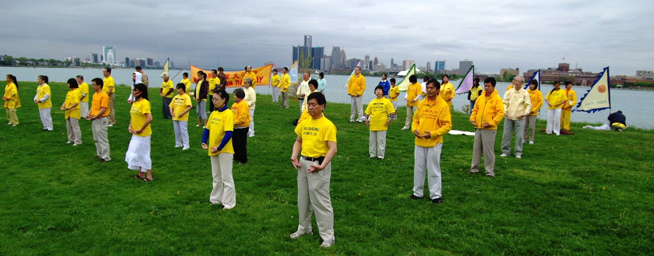 ![]() 美国大底特律地区的部份法轮功学员们,聚集在美加边境的底特律河畔集体炼功 |