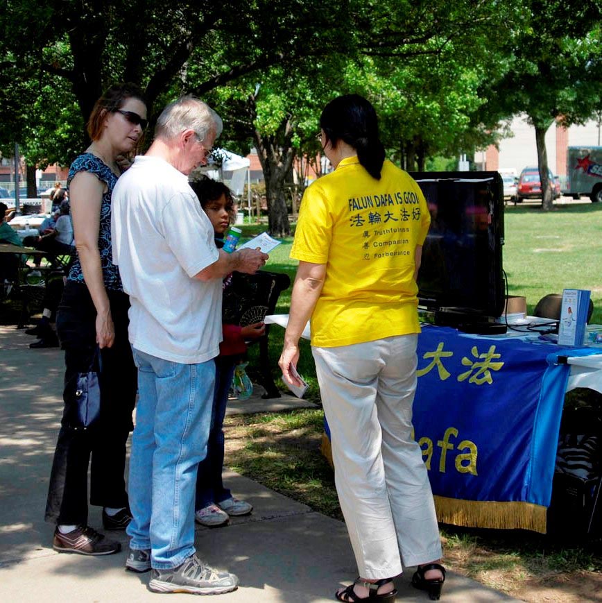 文化节在市中心的海格德(Haggard Park)公园举行,五月是美国南部四季中最适合户外活动的时光,炎炎夏日还未到来,但公园内已是绿树成荫,许多人都全家出来享受一个轻松、愉快的周末。对于有些更为幸运的人来说,他们更没有想到的是在这里他们“偶遇”法轮功。