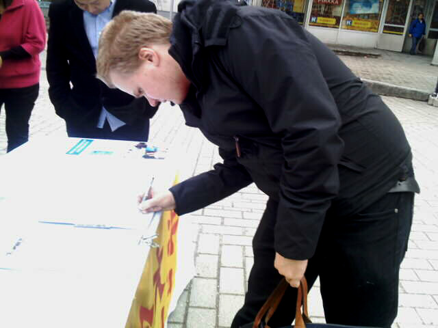![]() 这位外籍留学生在了解迫害真相后,在“反迫害征签表”上签名。 |
