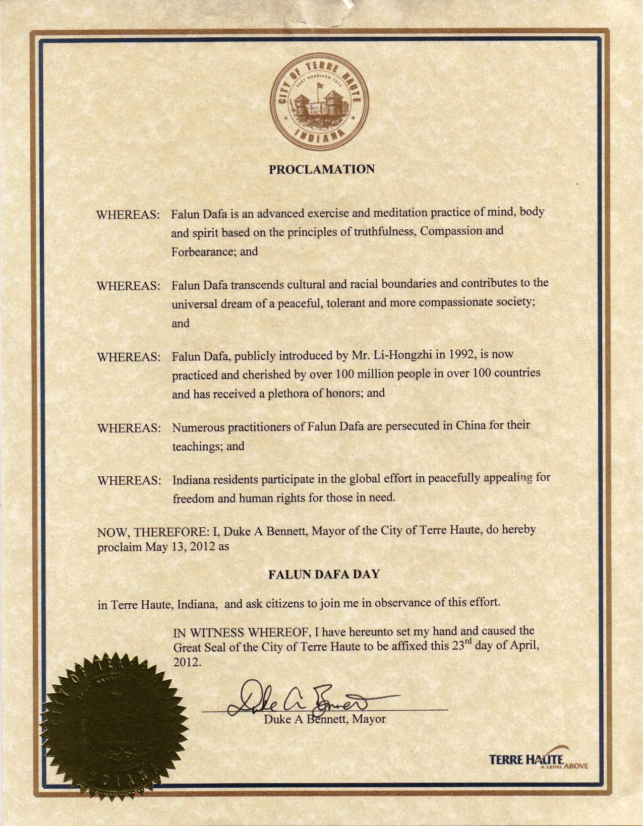 鉴此,我,印第安纳州特雷霍特市市长,杜克•阿•贝乃特,特此宣告二零一二年五月十三日为印第安纳州特雷霍特市