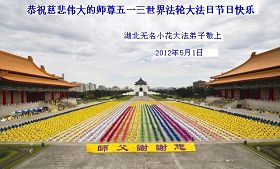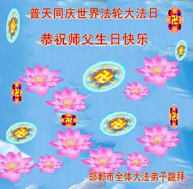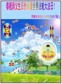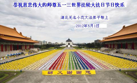 【明慧网二零一二年五月八日】每年的5月13日,世界各地的法轮大法弟子,都向明慧网寄来贺卡贺词,恭贺师尊华诞,并庆祝“世界法轮大法日”。今年的5月13日是大法洪传二十周年纪念日,中国大陆各行各业的大法弟子通过明慧网发来贺信庆祝大法洪传二十周年、庆祝“世界法轮大法日”、恭贺师尊华诞,感谢师父的慈悲救度。