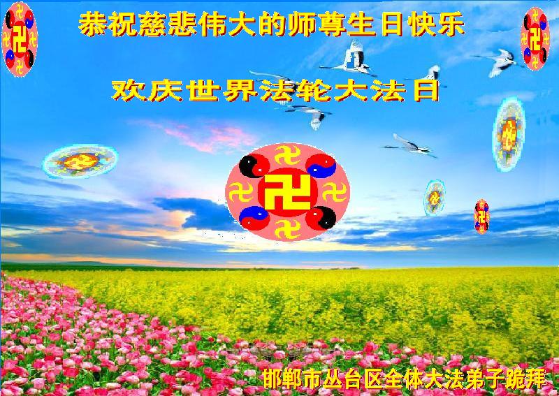 【明慧网二零一二年五月八日】每年的5月13日,世界各地的法轮大法弟子,都向明慧网寄来贺卡贺词,恭贺师尊华诞,并庆祝“世界法轮大法日”。今年的5月13日是大法洪传二十周年纪念日,中国以外的大法弟子纷纷举办各种活动庆祝大法洪传,将“法轮大法好”的信息传给更多世人。中国大陆的大法弟子通过明慧网发来贺信庆祝大法洪传二十周年、庆祝“世界法轮大法日”、恭贺师尊华诞,感谢师父的慈悲救度。这里是明慧编辑部已整理出来的大陆军警、司法系统大法弟子及家人来信汇编: