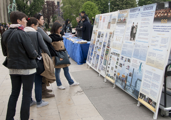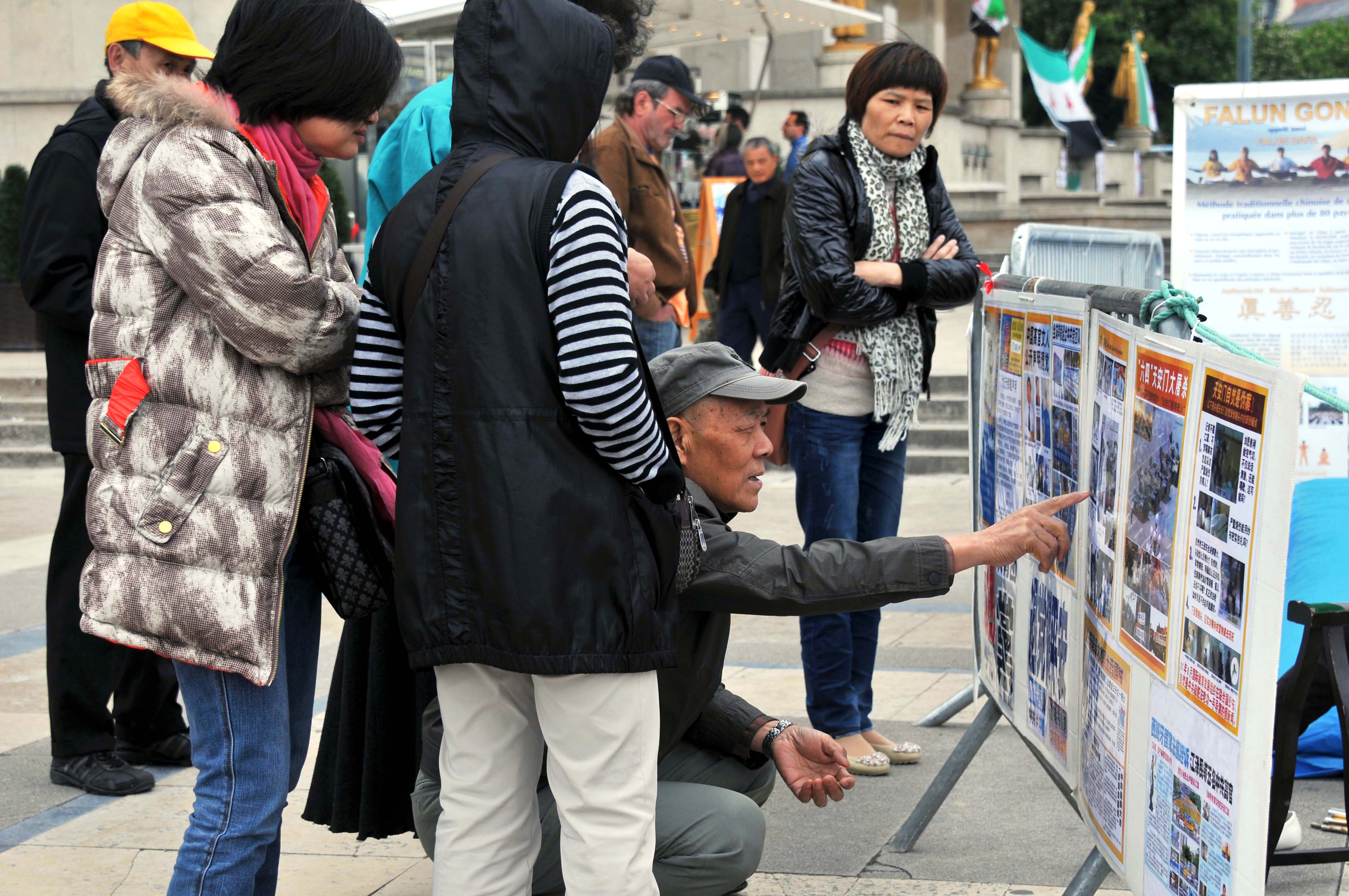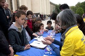 一位来自里昂的法国女士,在现场待了很长时间,当她了解到法轮功学员在中国遭迫害的遭遇,当时就要捐款给被迫害的法轮功学员。大法弟子婉言谢绝了。离开前,她又多拿了一份真相资料,要给她的一个当记者的朋友。几名法国人听完了真相,表示支持法轮功学员的反迫害行为,临走时对大法弟子说:“我感谢这种正义的行为,希望你们继续努力!”