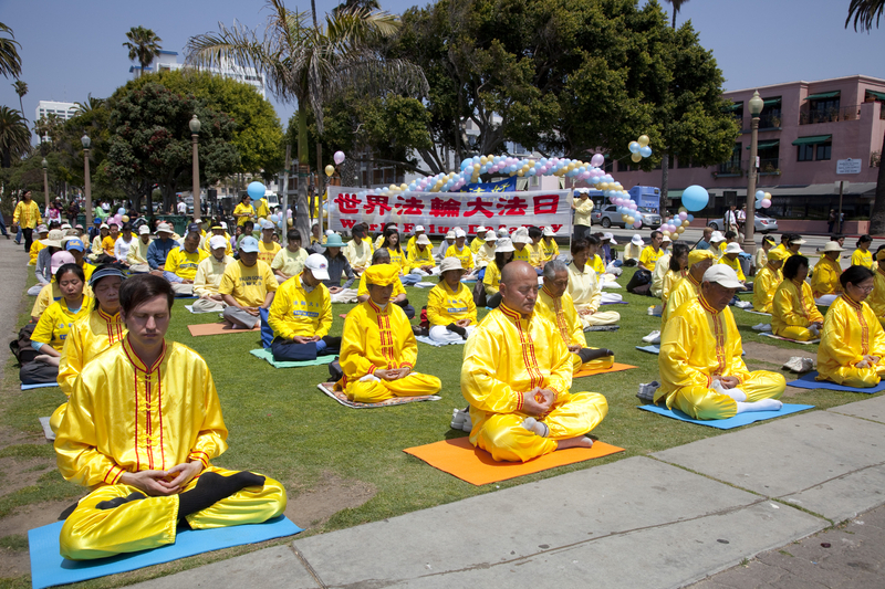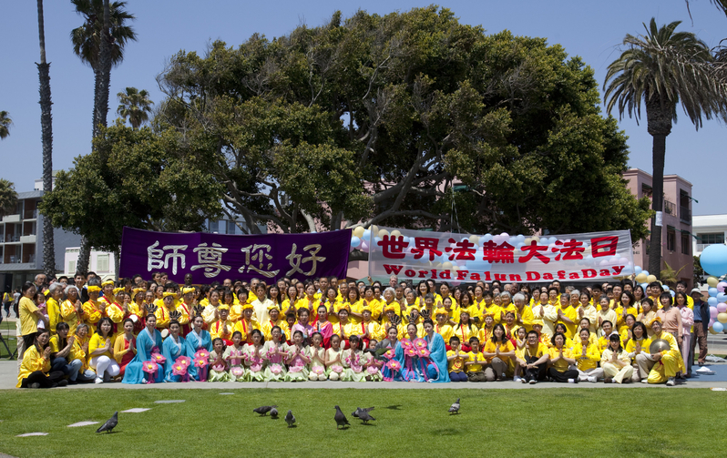 ![]() 洛杉矶二百多名法轮功学员聚集在著名旅游景点圣塔莫尼卡海滩,欢庆世界法轮大法日和法轮大法洪传二十周年。 |