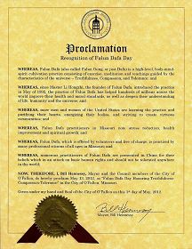 鉴于,所有法轮大法的活动都由志愿者免费提供,密苏里州的许多不同年龄层的专业人士都在炼法轮功;并且