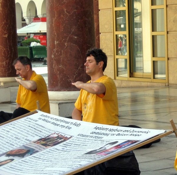 因希腊白天的气温在35~40度,所以白天街上不见人,法轮功学员一般在傍晚之后于萨洛尼卡市新海滩上举办信息日。功法演示和优美的音乐吸引着很多在沿海散步的当地民众。前来了解真相的人们纷纷驻足观看真相横幅,一些学员散发传单并讲真相;不少年轻人对功法演示非常感兴趣,当场就跟着学炼。许多人询问在哪里可以找到炼功点。