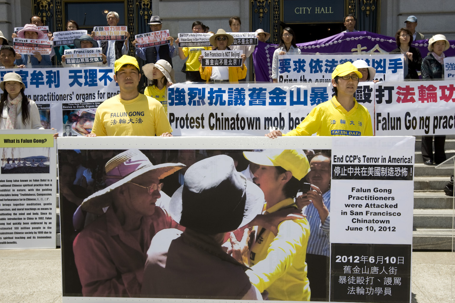 法轮功学员强烈要求旧金山市长和市府官员彻底调查这起暴力恶性事件,严惩凶手,整治旧金山唐人街的治安,保障市民的人身安全。并通告市民、以保证旧金山不再发生这种有损美国自由和人权精神的仇恨犯罪事件。