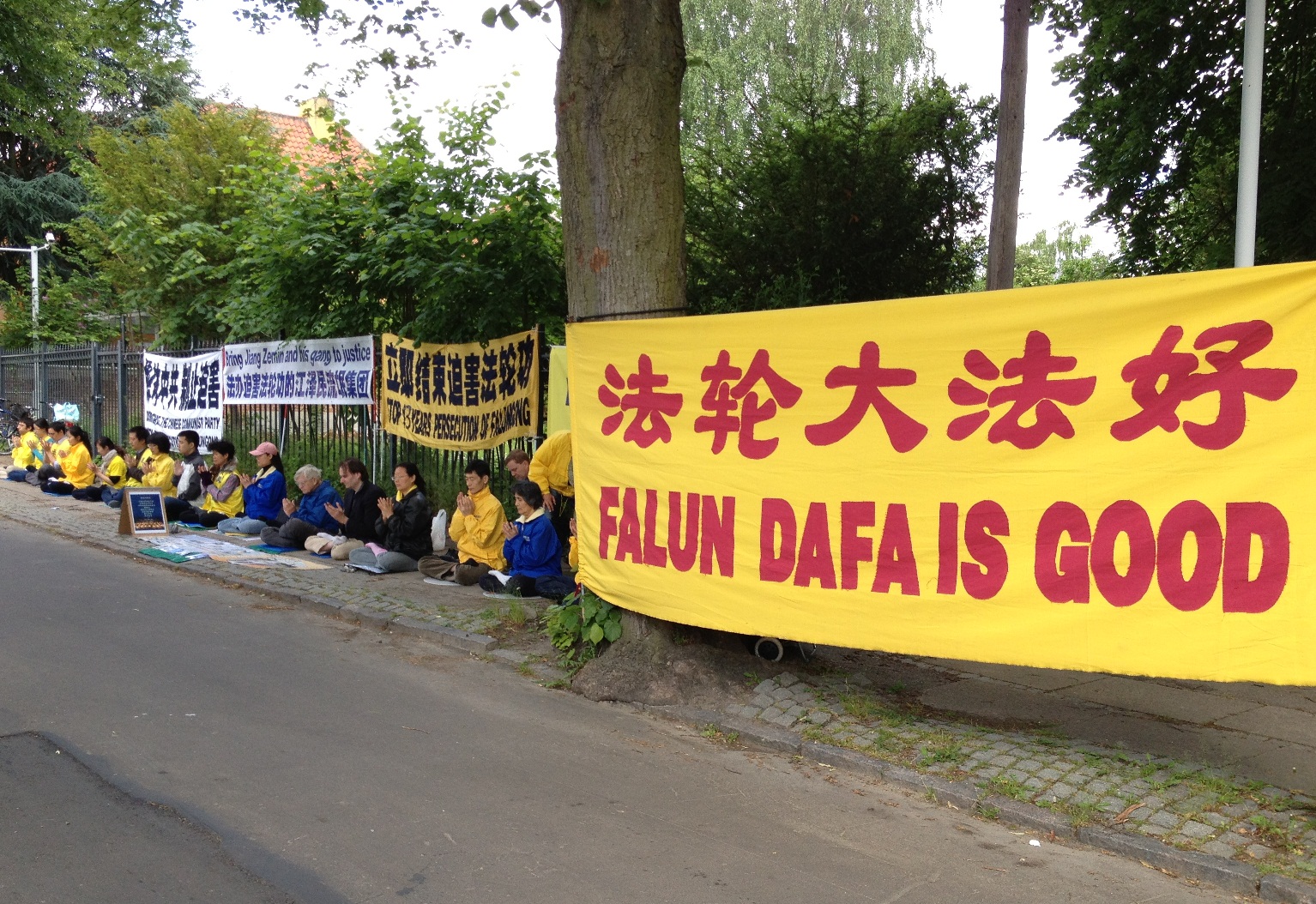 六月十五日,法轮功学员从早上开始一直到夜晚,先后在中使馆前、中心地带的市政厅广场和丹麦女王为胡锦涛举办晚宴的议会大厦克里斯欣堡附近三个场所,举行和平请愿,呼吁胡锦涛把握历史机会,停止迫害法轮功,法办迫害法轮功的江泽民及其流氓集团;呼吁丹麦政府在经济利益面前,仍然记住丹麦的立国之本:人权、自由与民主;向所有的丹麦善良民众演示功法,揭露中共残酷迫害法轮功的真相。