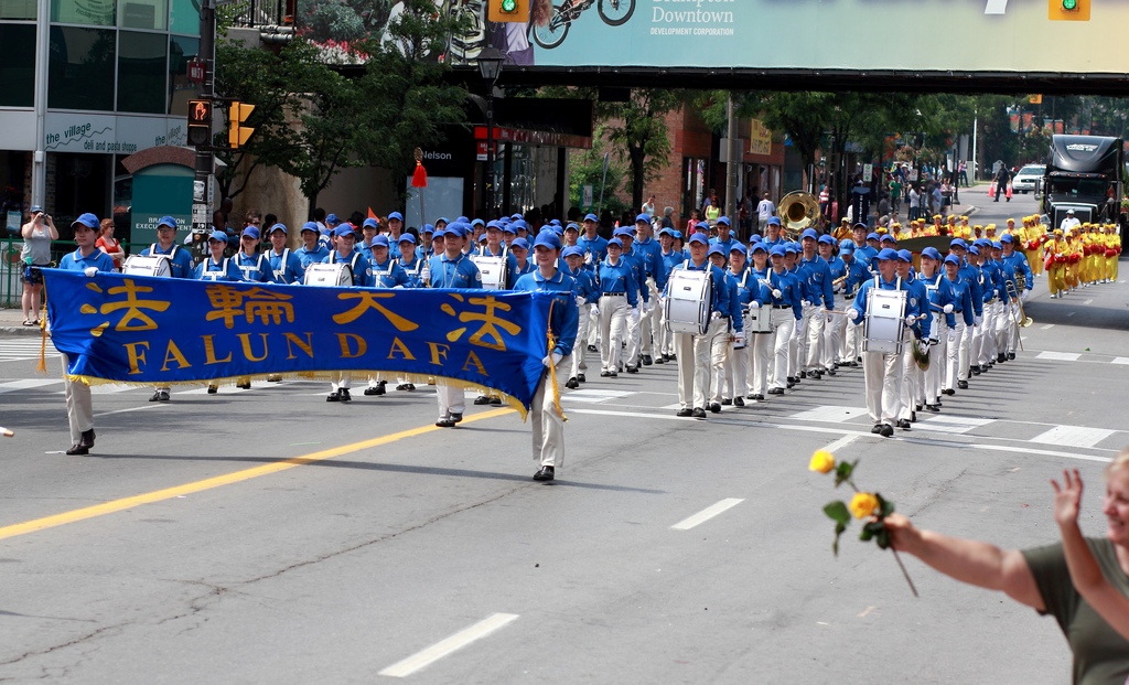六月十七日,在奥沙瓦多元文化节游行开幕式上,天国乐团应邀演奏了加拿大国歌,赢得了观众的热烈掌声。来自中国大陆的张女士说:“这么多中国人在西方国家的节日上演奏加拿大国歌,让中国人感到很骄傲。”