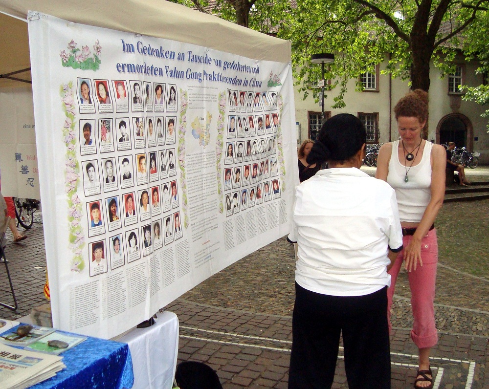 一位德国老太太退休前在大学里工作,她了解到法轮功在中国遭到的迫害后说,自由对每个人都是非常重要的,而中国人的基本自由都被剥夺了。她表示要把她了解到的消息告诉给她接触到的中国人,并建议他们要多听听多看看,多了解真相。她还提醒法轮功学员要注意安全,因为共产党是什么坏事都干得出来的。
