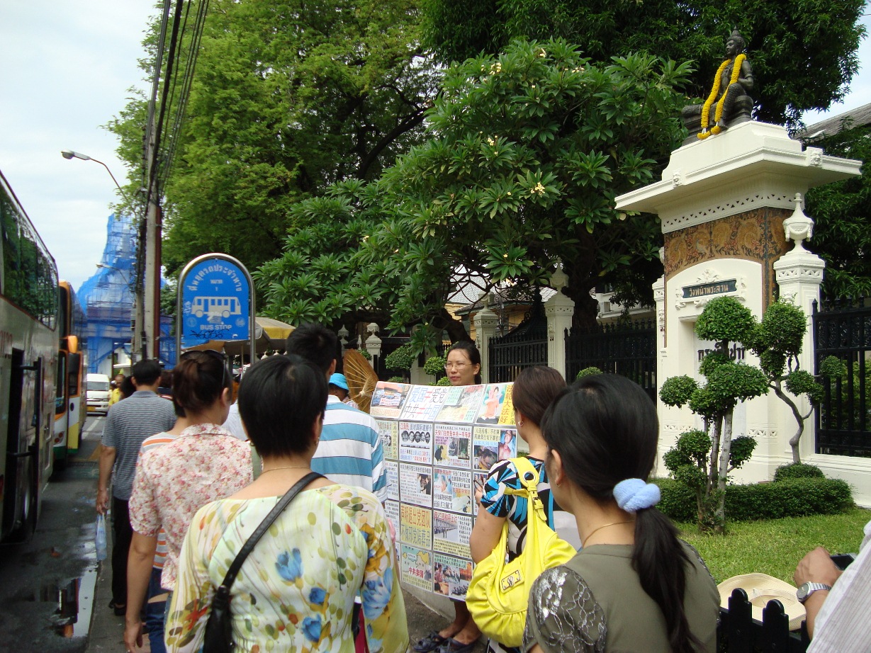 图片:大陆游客在泰国景点观看法轮功真相展板 【明慧网】