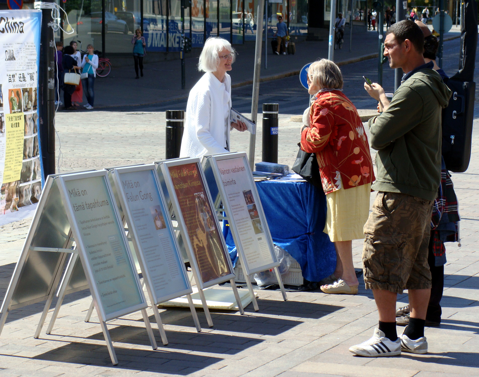 呼吁营救陈真萍的报道引起了人们的广泛关注,很多人老远看见这姐妹俩就过来签名。活动中有两位路过的市民要给法轮功学员捐款,但是被法轮功学员谢绝,只接受签名。很多市民签名后索要法轮功光盘要详细了解法轮功。