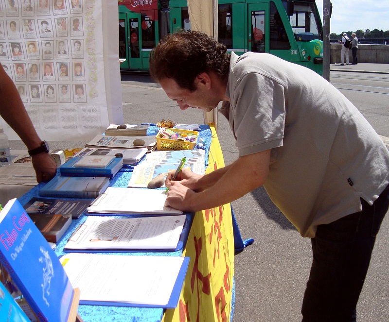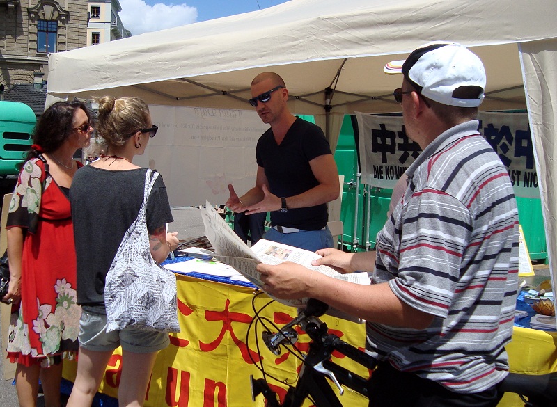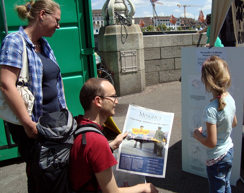 ![]() 法轮功学员在瑞士巴塞尔举办“传真相 反迫害”信息日 |