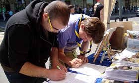![]() 人们纷纷签名声援法轮功反迫害 |