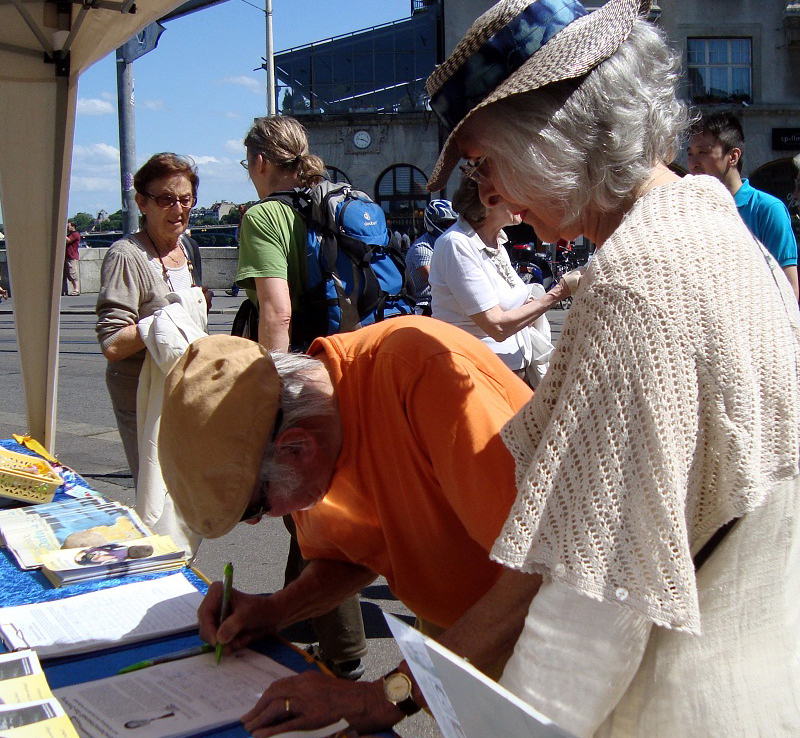 来签名支持法轮功学员反迫害的人中,一对上了年纪的犹太夫妇对法轮功学员被迫害到这种程度感到震惊。他们表示,对这样严重的罪恶,重要的是人们要超越宗教的界限而团结起来,共同制止迫害,因为那是反人类的罪行。
