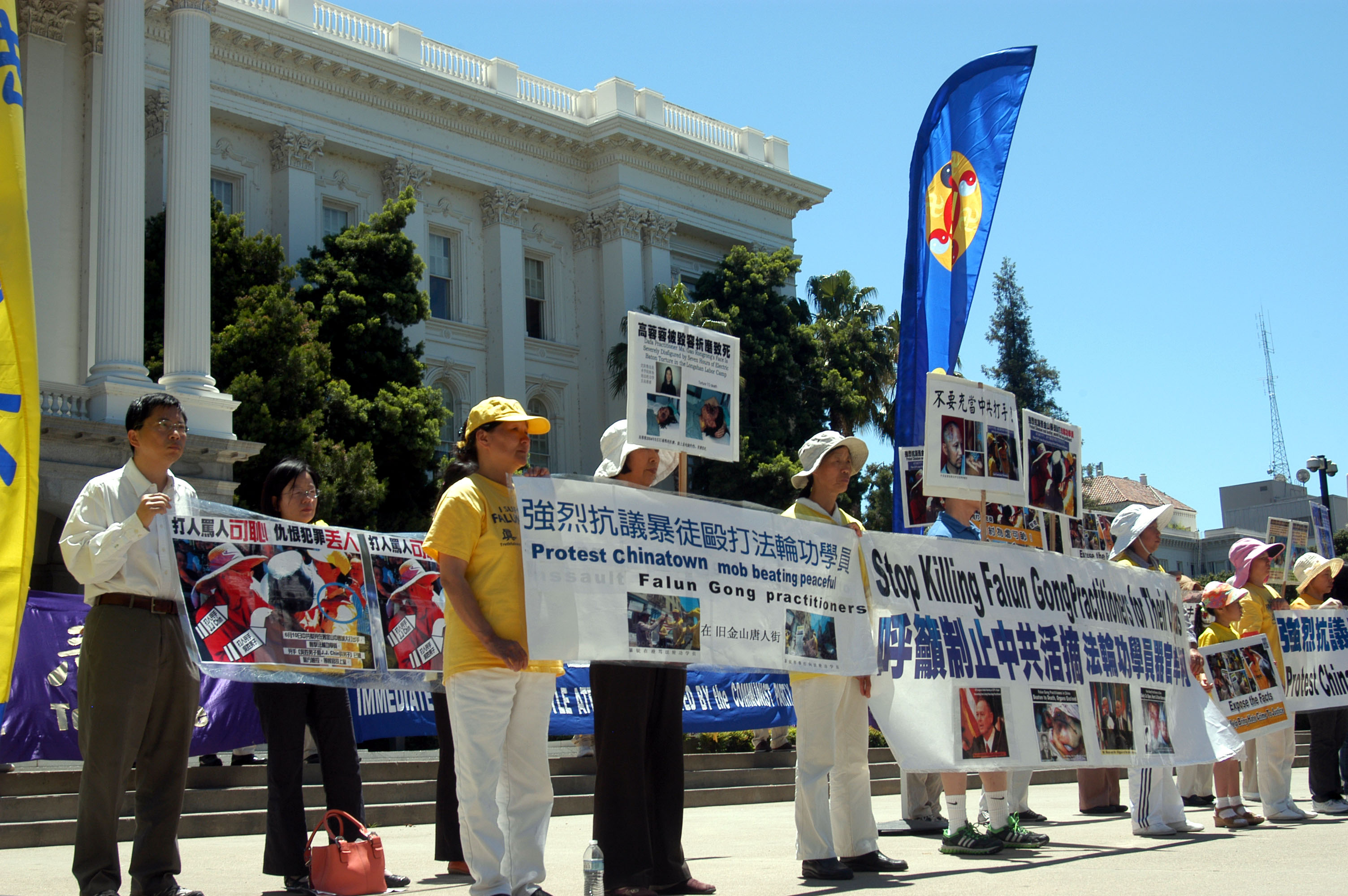 自二零一一年十一月开始至今,旧金山中国城已经连续发生九起针对法轮功学员的暴力攻击事件。每次法轮功学员都遵循“真、善、忍”的原则,打不还手、骂不还口。