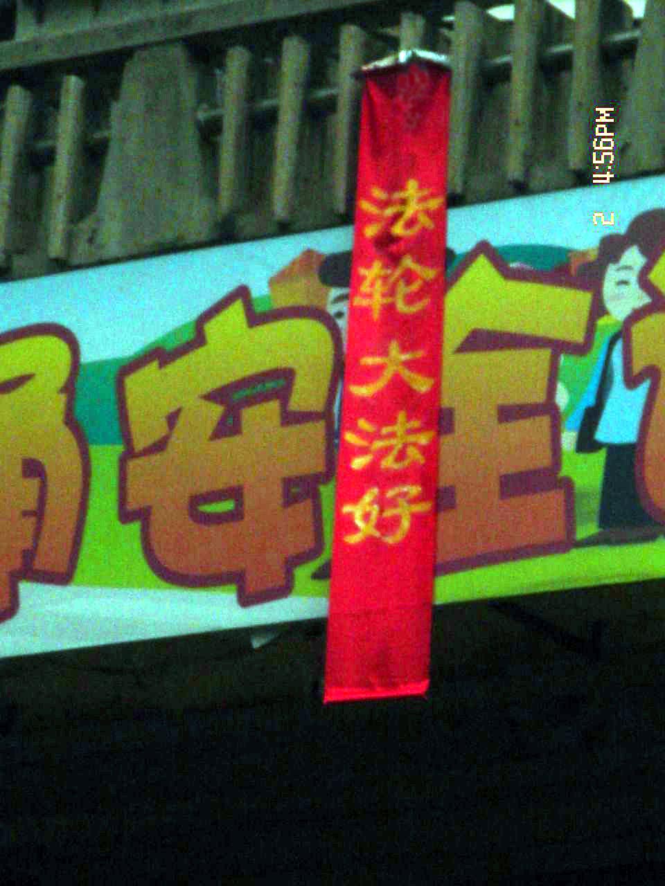 好几个行人路过时都念:“法轮大法好”,有一个说,这个景好,应该把它拍下来。笔者拍照时,有行人顺着像机看过去,都没有说话。说明现在很多人都明白了真相。
