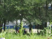 ![]() 图中依稀可见的就是汪清县公安局民警训练基地洗脑班,非常隐蔽,四面环山,周围被树丛包围。 | ![]() 此楼就是汪清县公安局民警训练基地洗脑班,是一幢二楼,前身是满天星水库大坝指挥部。窗户上全都安装铁栏杆。南面是满天星水库大坝 | ![]() 此处就是满天星水库大坝,位于洗脑班南面,北面便是汪清县公安局民警训练基地洗脑班。 |