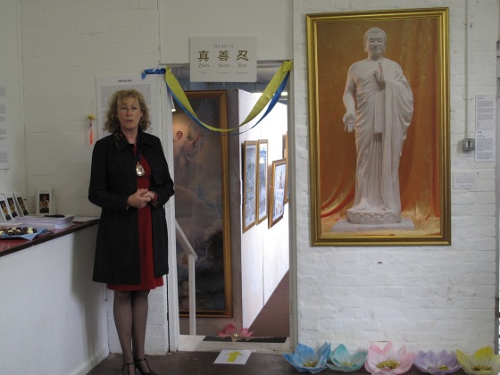 菲蒂默瑞副市长宣布“真善忍国际美展” 拉伊展开幕,她说:“借此令人感动的展览开幕之际,我现在要向世界上敢于为他们的信仰、人权和所受苦难站出来的每一个人致敬。我坚信中国人会走出黑暗,进入光明的世界,磨难意味着未来的希望。”