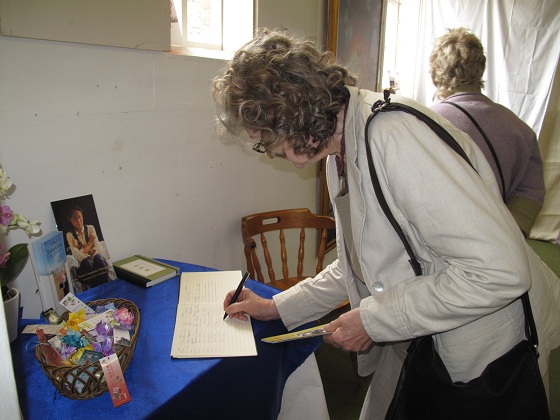 剪彩后,菲蒂默瑞副市长在美展举办方的陪同解说下认真欣赏了每一幅作品,然后她在留言簿上写到:“一个启发人、感动人的展出”。