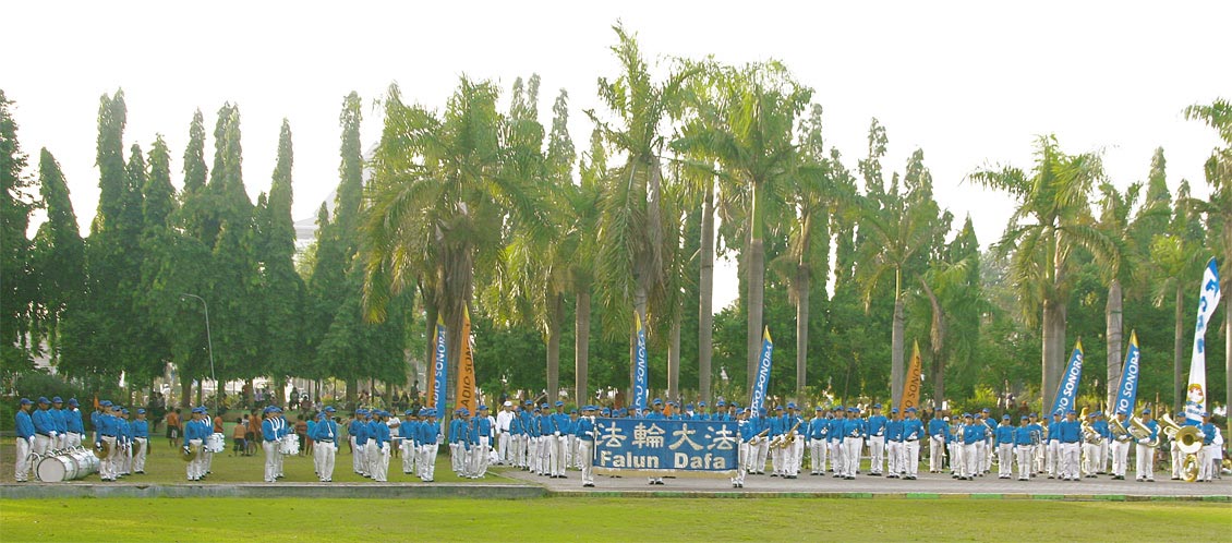 整个庆典活动包括集体体操,以及环绕西多阿佐市大游行,共计有六千多名国民休闲体育会的成员参加,分为二十四个团,天国乐团在游行队伍的最前端率领本次大游行,以三公里的行程,天国乐团演奏着最拿手的如“法轮大法好”、“法正乾坤”,“佛恩圣乐”,“欢乐颂”等等乐曲。