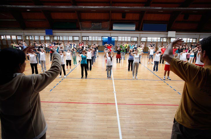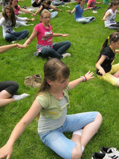 第四所学校坐落在相当偏远的村庄。一百多个学生被召集到学校健身房。校长也参加了。教完功后,当我们有机会交谈时,五十多岁的女校长说:“我们在盼望你们来,你们的到来是神赐给我们的礼物,我感觉今天不寻常。”她说她不相信达尔文的进化论,虽然她不得不在学校里教这个;她也不是宗教徒,但是她相信有更高级的生命的存在。