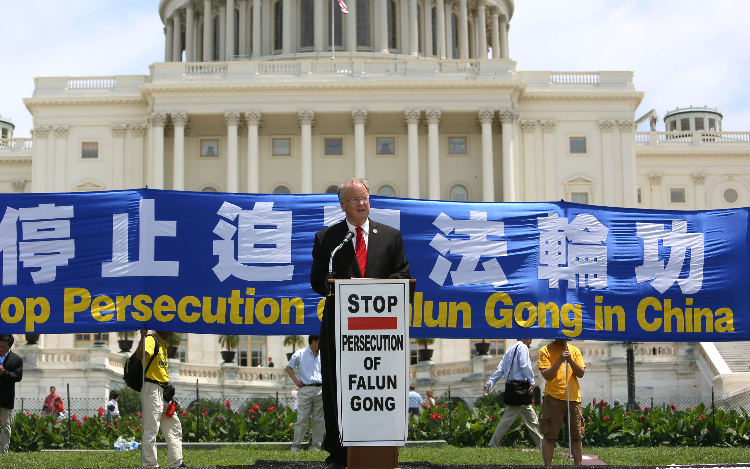 美国会众议院监察委员会主席、美国加州资深国会众议员达纳•罗拉巴克(Dana Rohrabacher),多次参加法轮功华府七二零反迫害活动,他对参加集会的法轮功学员表示“真善忍”代表着宇宙的美好,对世界很重要。“感谢你们的勇气,我们与你们在一起,美国人民的心与你们在一起,美国人民会与你们站在一起。