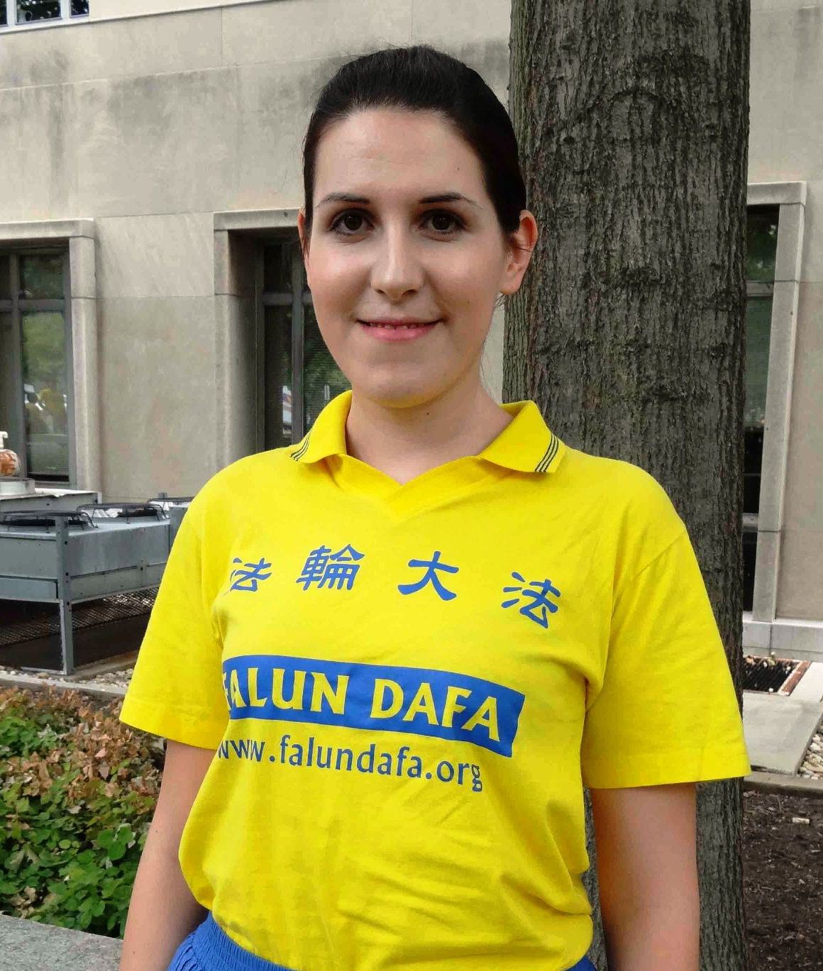 玛璐(Maru)女士来自南美的墨西哥 ,她修炼法轮大法五年了。这次有五位学员从墨西哥的墨西哥城来到华盛顿DC,参加反迫害大游行。她是通过朋友介绍从而走入法轮大法修炼,而教她学功的朋友,也是通过朋友介绍开始修炼法轮大法的。她们学习的是西班牙语的大法书籍,就这样心口相传,在墨西哥有越来越多的法轮大法修炼者,绝大部份都是一九九九年之后开始修炼的,还有很多是新学员。