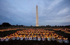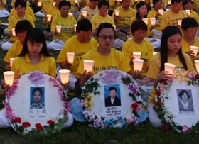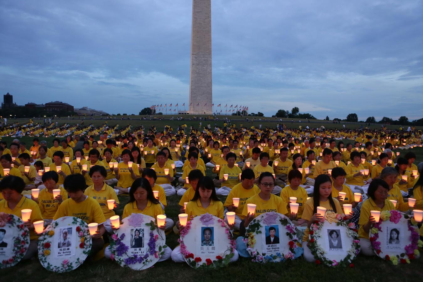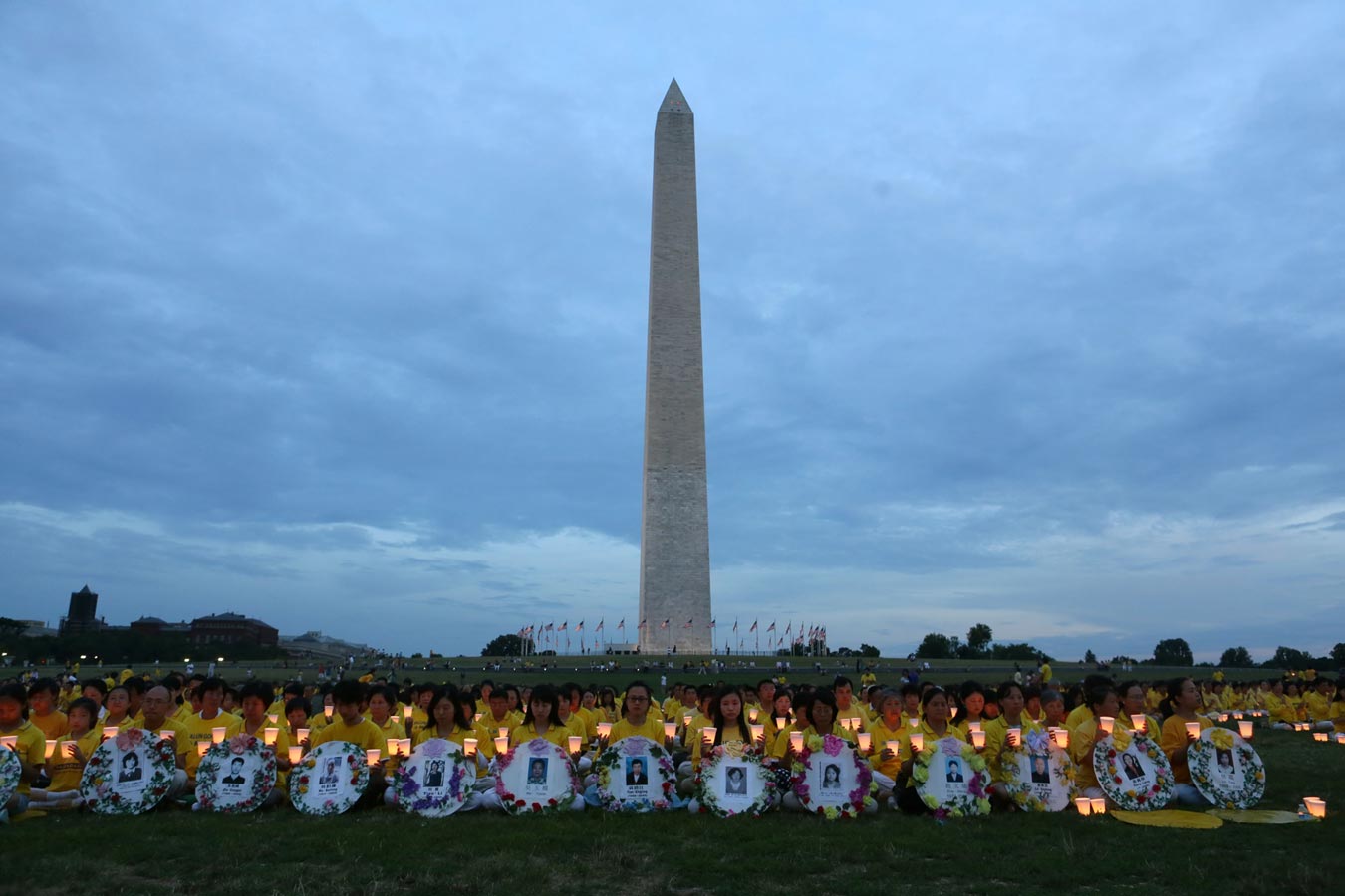 十三年过去了,二零一二年七月十三日,千余名来自世界各地的大法弟子与正义人士再次来到美国首都华盛顿DC,聚集在这象征着自由与希望的华盛顿纪念碑下,又一次点燃烛光,并排出“真善忍”三个大字,悼念那些为坚守自己的信仰与良心、维护“真善忍”宇宙真理被中共迫害致死的法轮大法弟子。