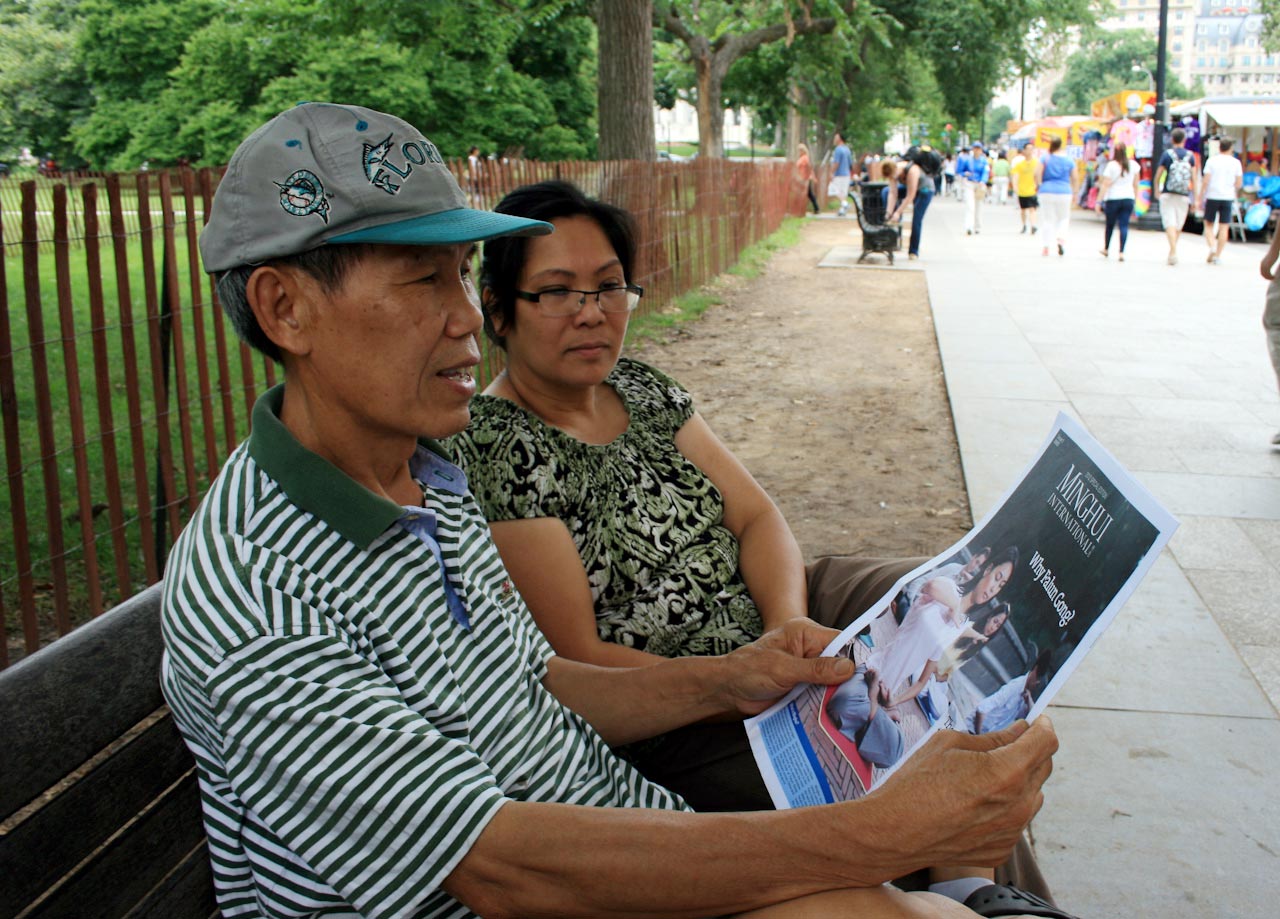 “我希望你们坚持下去。”那位几年来一直看到法轮功学员游行的威廉先生提到越南也有共产党, “它们只是为了自己的利益,不顾老百姓。”他们夫妇表示对法轮功已经有所了解,要支持法轮功。