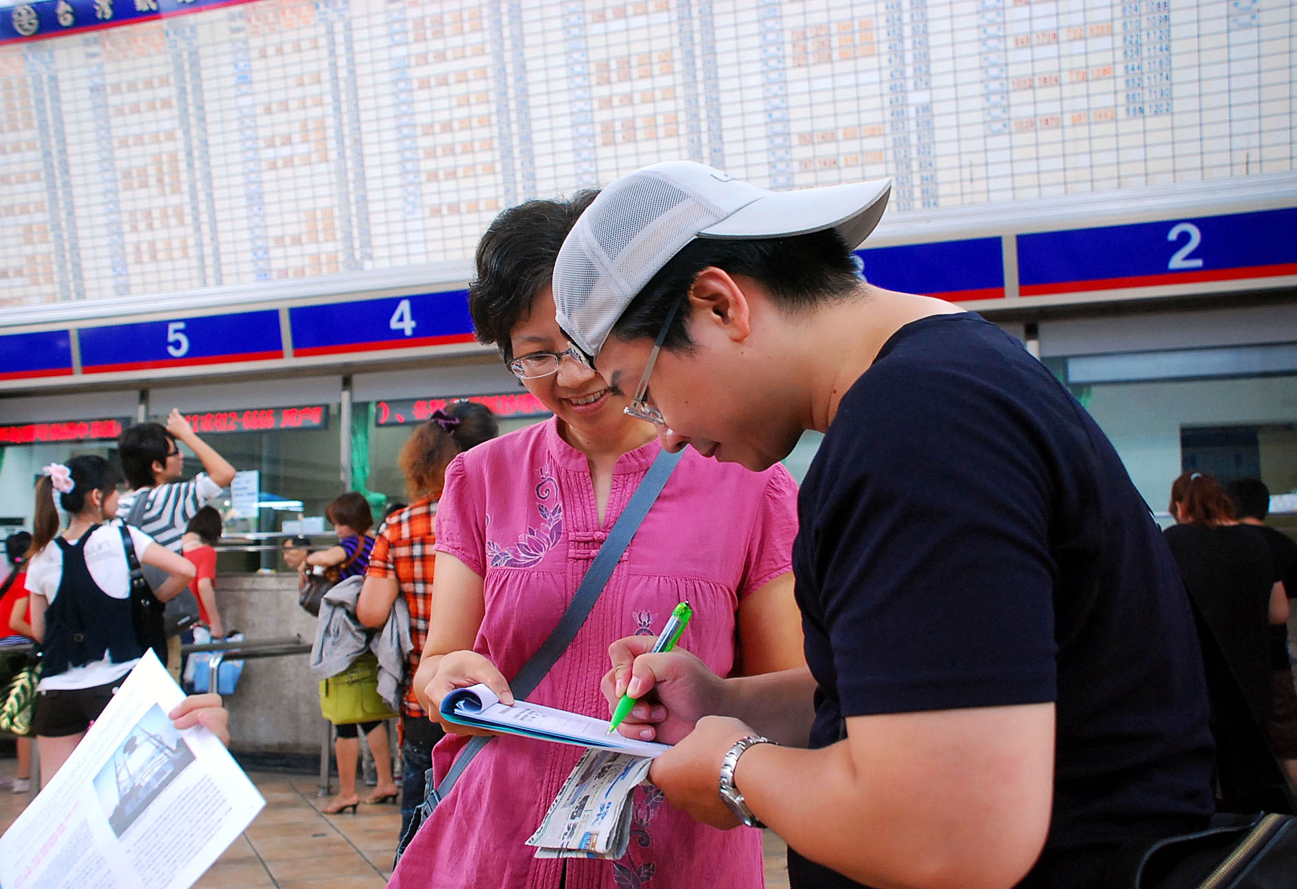 十五日下午,台湾法轮功学员在嘉义火车站向过往旅客讲钟鼎邦被中共非法扣押的真相,征集签名向总统及高层要求即刻营救钟鼎邦,获得各行各业人士热烈响应。许多学生都签名支持,几位放暑假到台湾旅行的香港学生,也加入签名响应的行列。