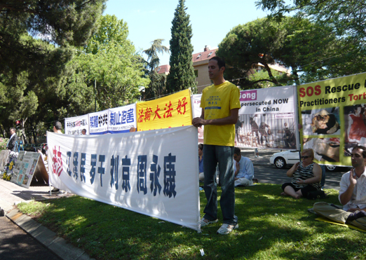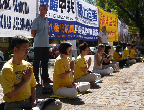 ![]() 西班牙法轮功学员中使馆前抗议中共持续十三年的残酷迫害 |