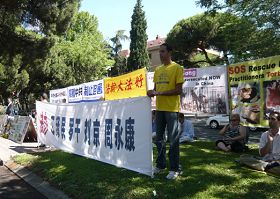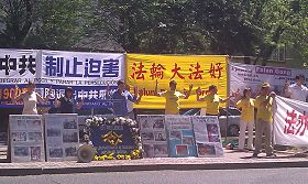 有路人对学员说:这样的活动对争取中国人权是非常重要的,同时还能告诉世人法轮功遭受迫害的真相。
