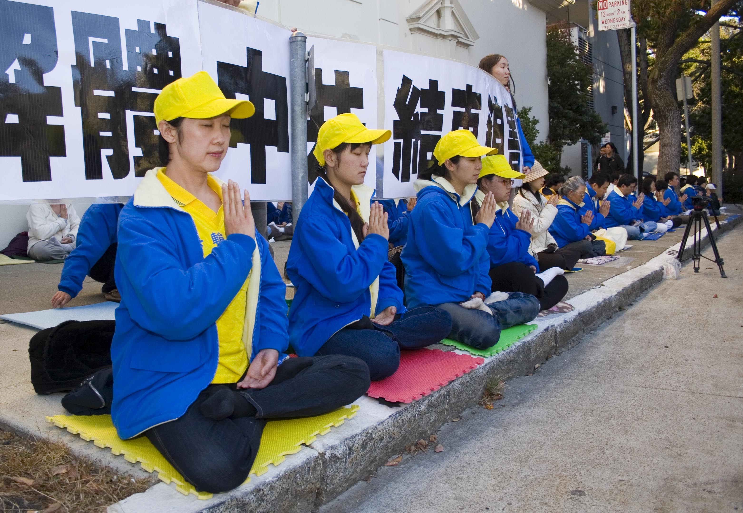 ![]() 法轮功学员在中领馆前抗议中共的迫害 |