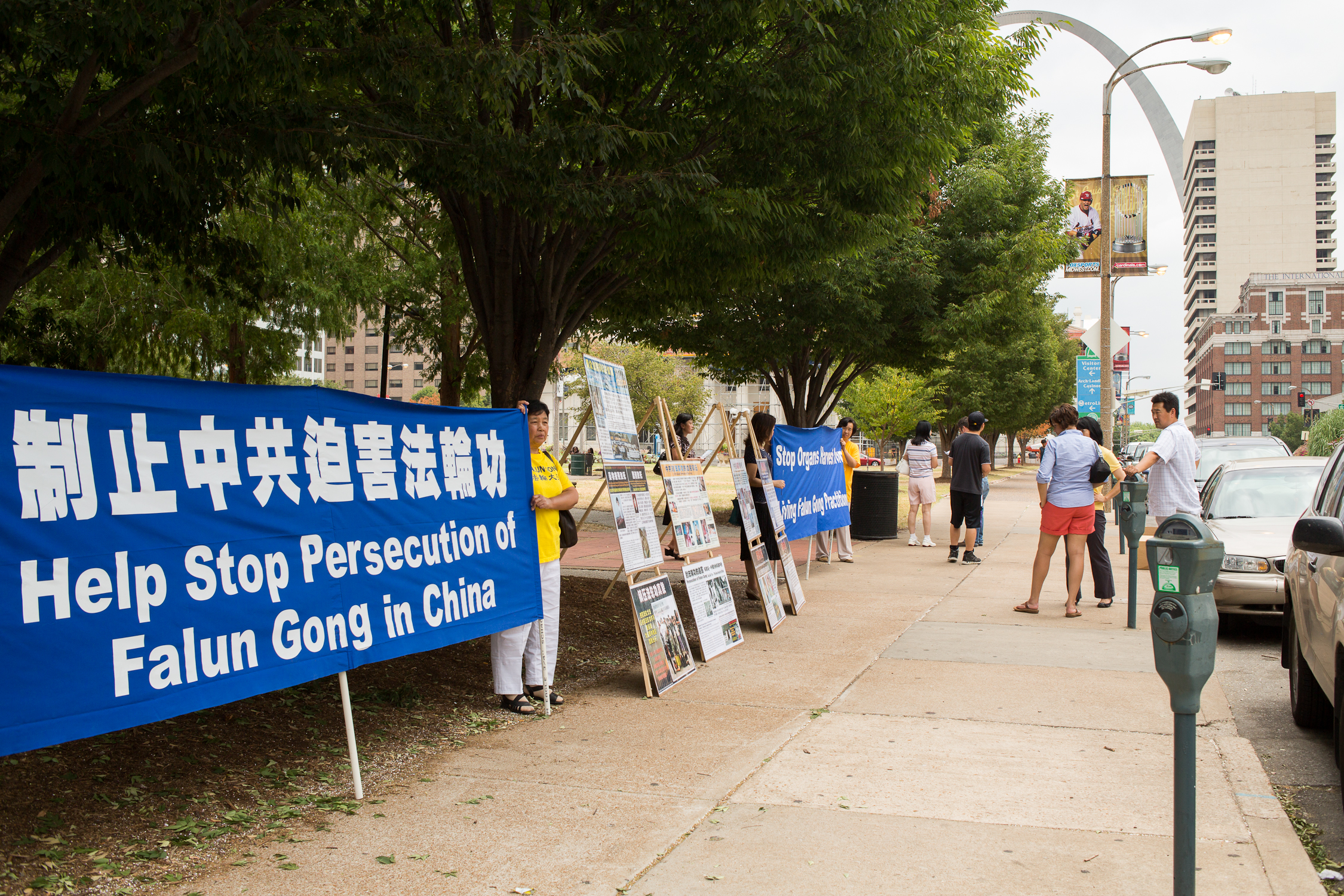 ![]() 图板和横幅帮助路人了解发生在中国的迫害事实 |