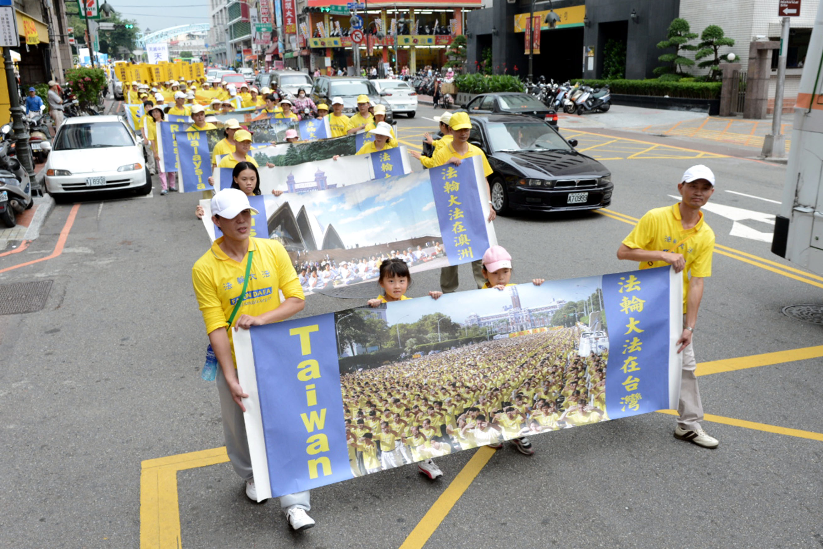 集会后于市区展开遊行,鼓乐声及浩荡的队伍引起民众关注,途中虽雷雨交加,但法轮功学员仍坚持走完全程。在骑楼观看的市民为学员不惧风雨,坚持救人的善行所感动,纷纷表示赞佩,并签名援救钟鼎邦。一千多位学员在烈日下、风雨中,汇聚更多世人正义的力量,拯救善良,结束迫害。