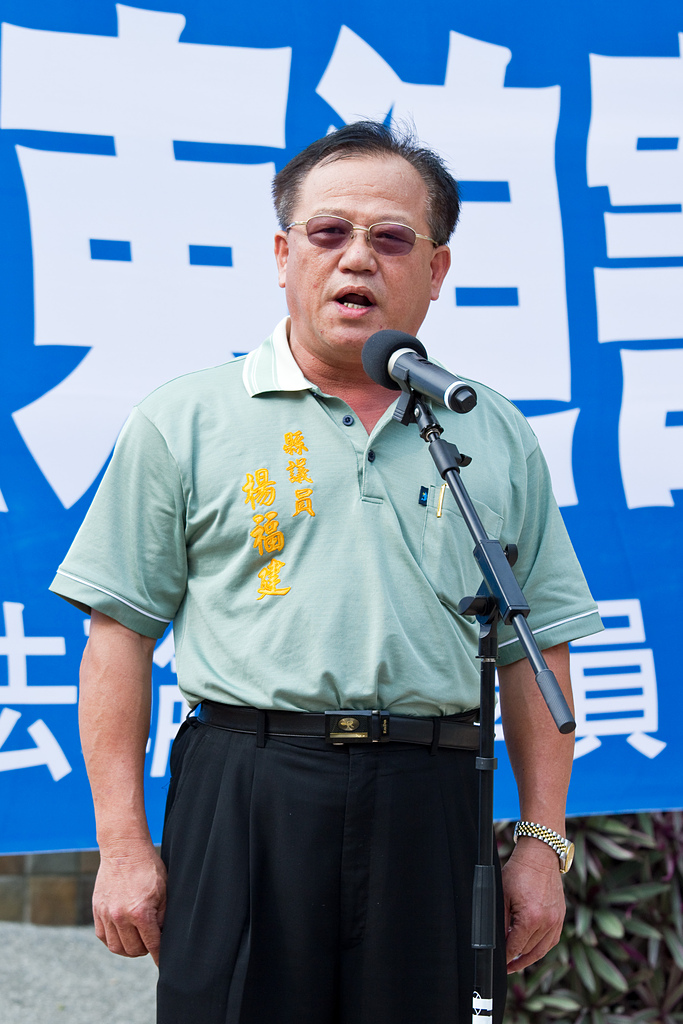 同样远道而来的彰化县议员杨福建表示,台湾政府没有立即营救钟鼎邦,令人感到痛心。他希望“大家一起来支持中国民众争取自由,也同时要求马英九政府,应该强力要求中国政府无条件地释放钟鼎邦。要求中国政府停止迫害法轮功学员,也要求中国政府即刻改善民主自由及人权。”