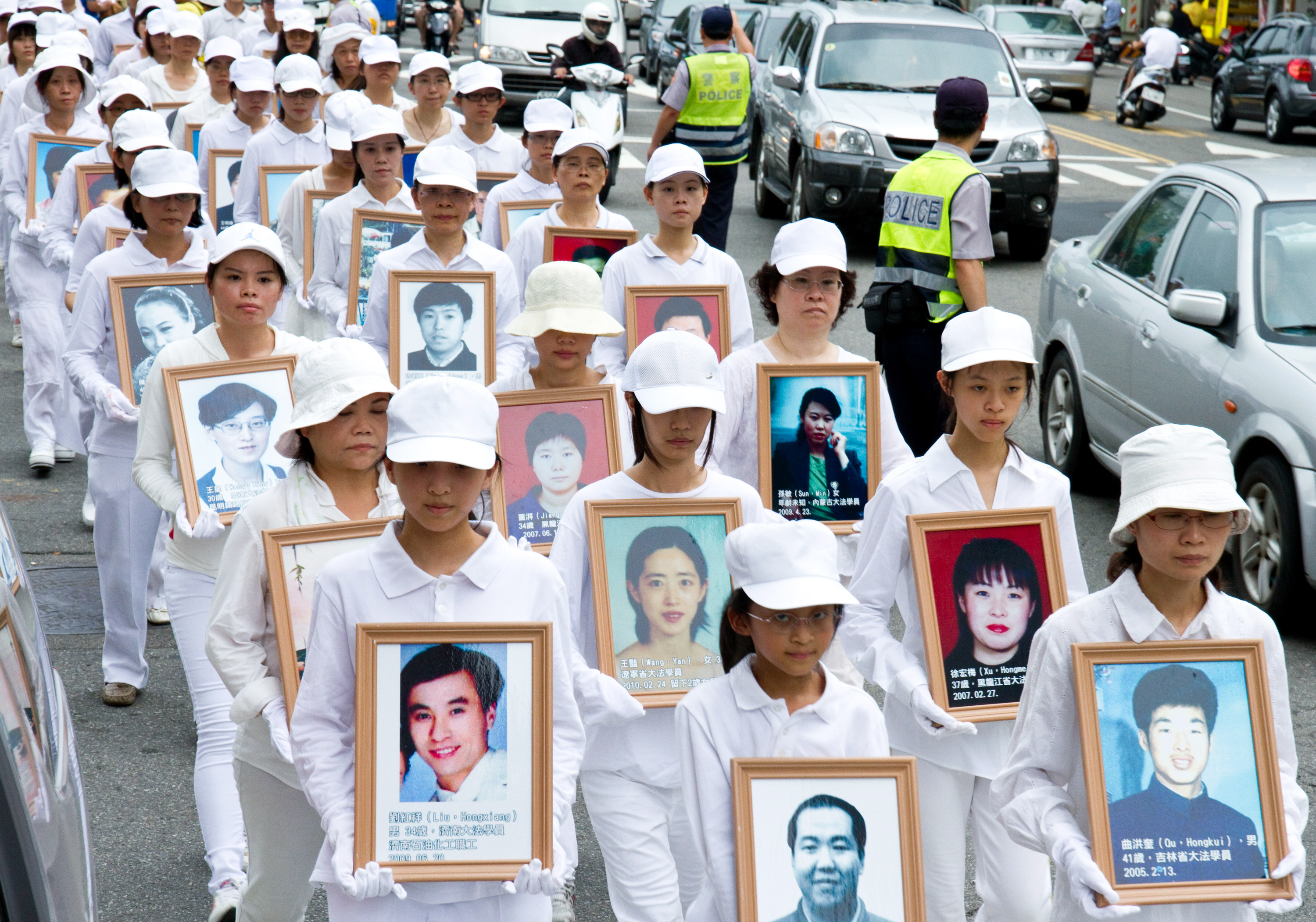 ![]() 法轮功学员手捧遭中共迫害致死的学员遗照 |