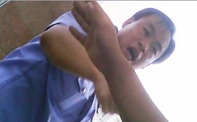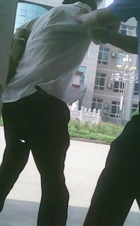 等到周向阳和岳父要求会见李珊珊时,张姓警察说不让见。周向阳岳父问为什么不让见,张姓警察喊就是不让见。李珊珊父亲说大老远来了,这么长时间没让会见珊珊。张姓警察还是不让见,也不说明理由。珊珊父亲就往里走,张姓警察两只手揪住珊珊父亲衣服开始动武,然后另两个劳教所警察(警号X135651,X135626)也和张姓警察一起扭推珊珊父亲(抓脖领子,使劲拽)。