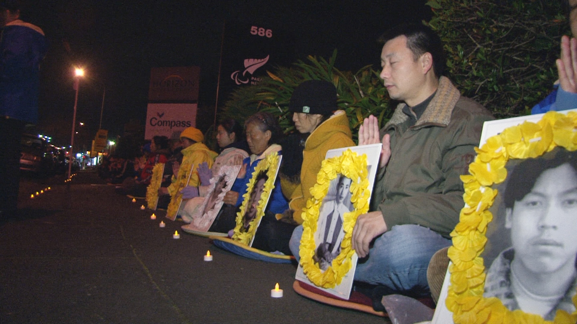 ![]() 新西兰学员于奥克兰中领馆前烛光守夜,悼念中国大陆被迫害致死的学员。 |