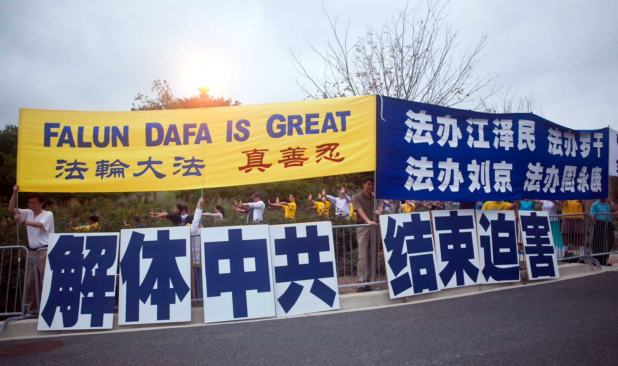 ![]() 反迫害十三周年,美国首都大华府地区的部份法轮功学员在中领馆前抗议迫害。 |