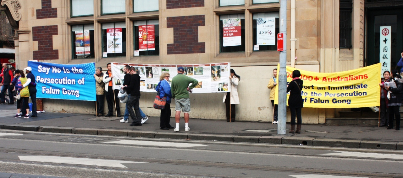 十三年前的七月二十日,中共独裁者一意孤行,开始了全面系统地对上亿信仰“真、善、忍”的法轮大法修炼者的非法迫害。时至今日,迫害仍在持续。为了帮助更多的人们明白真相和呼吁停止迫害,法轮功学员以在悉尼主街上拉开讲真相横幅,筑起“真相长城”,并摆放展板、派发真相资料等,向路人讲解中共的罪恶及正在发生的退!党!大潮。特别是揭露中共活体摘取法轮功学员器官的真相图片展,令路人纷纷驻足观看并了解真相;有不少路人在呼吁信上签名,谴责中共这种惨无人道的兽行。过往行人中还有不少是当地的华人,他们也在了解真相、认清中共的邪恶本质后纷纷声明退出中共。